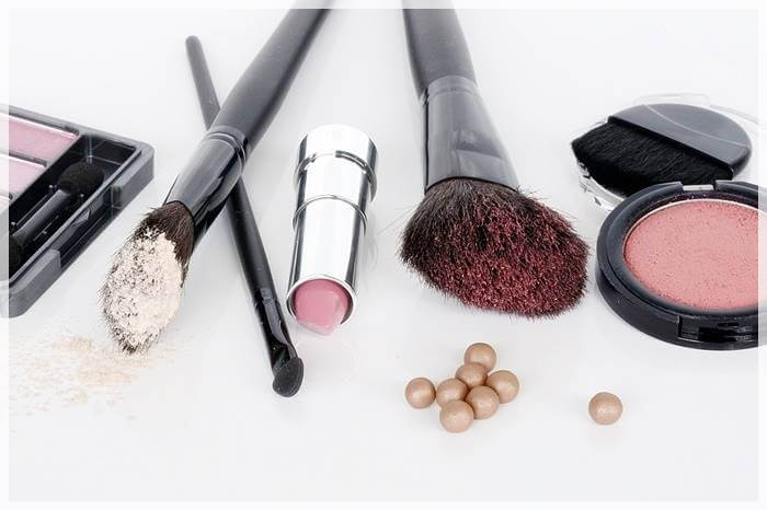 化粧下地をぬって、コンシーラーも使い、ビューラーでまつ毛をカールさせてシッカリとマスカラもつけます。チークやハイライトもつけてフルメイク。